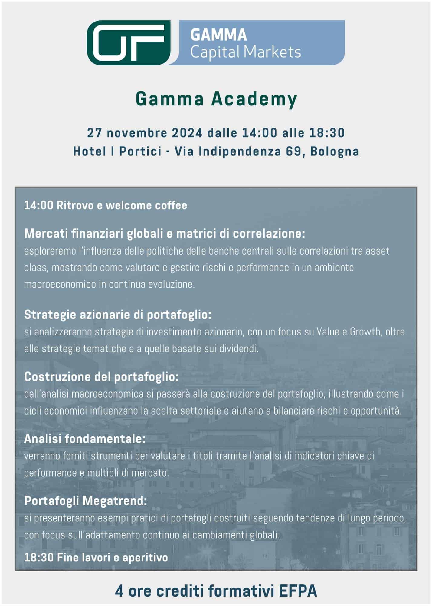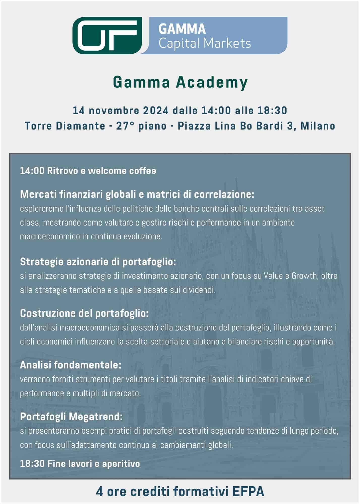In quattro ore intense, apprenderei le tecniche e le strategie che in Gamma Capital Markets Succursale Italiana utilizziamo con successo da oltre 7 anni.